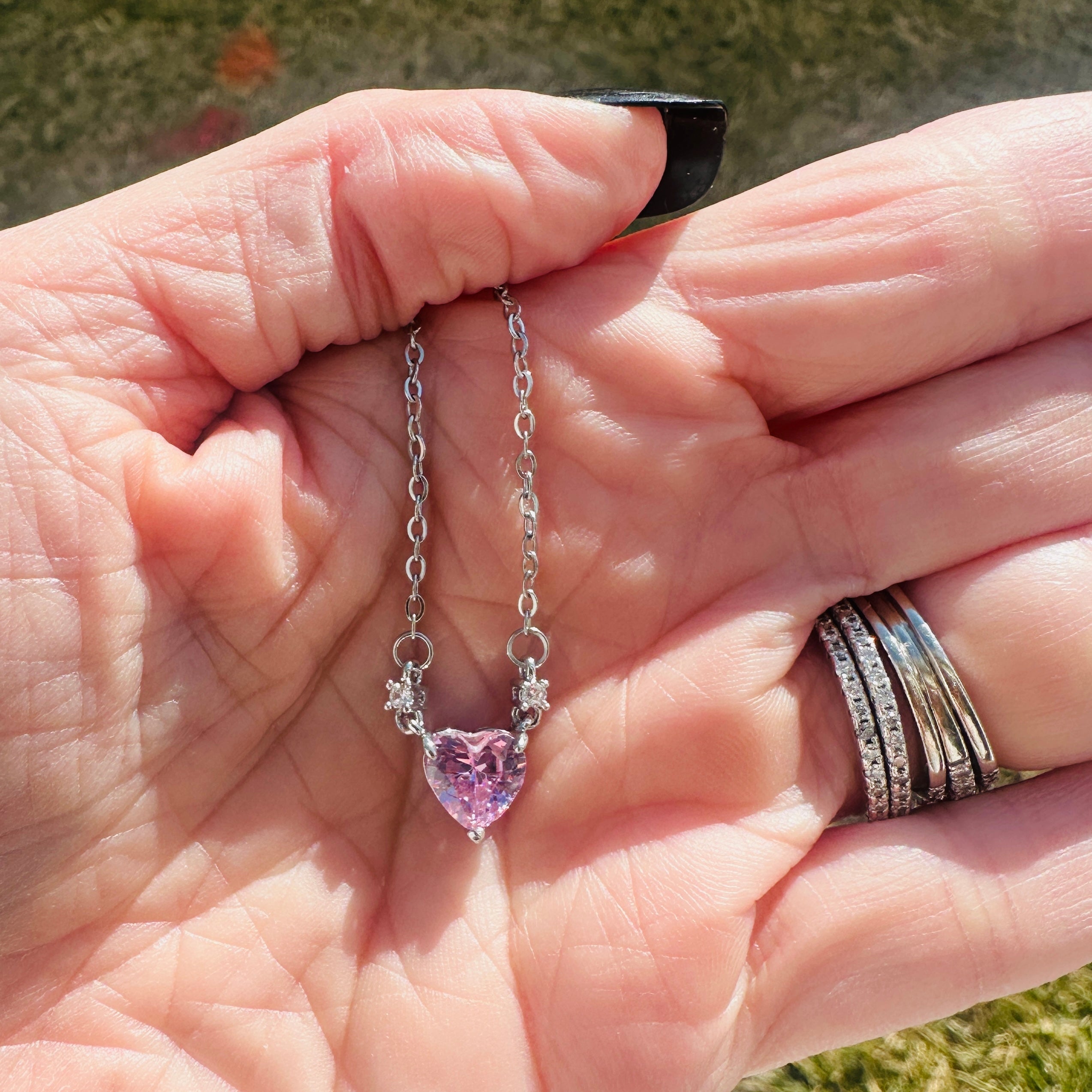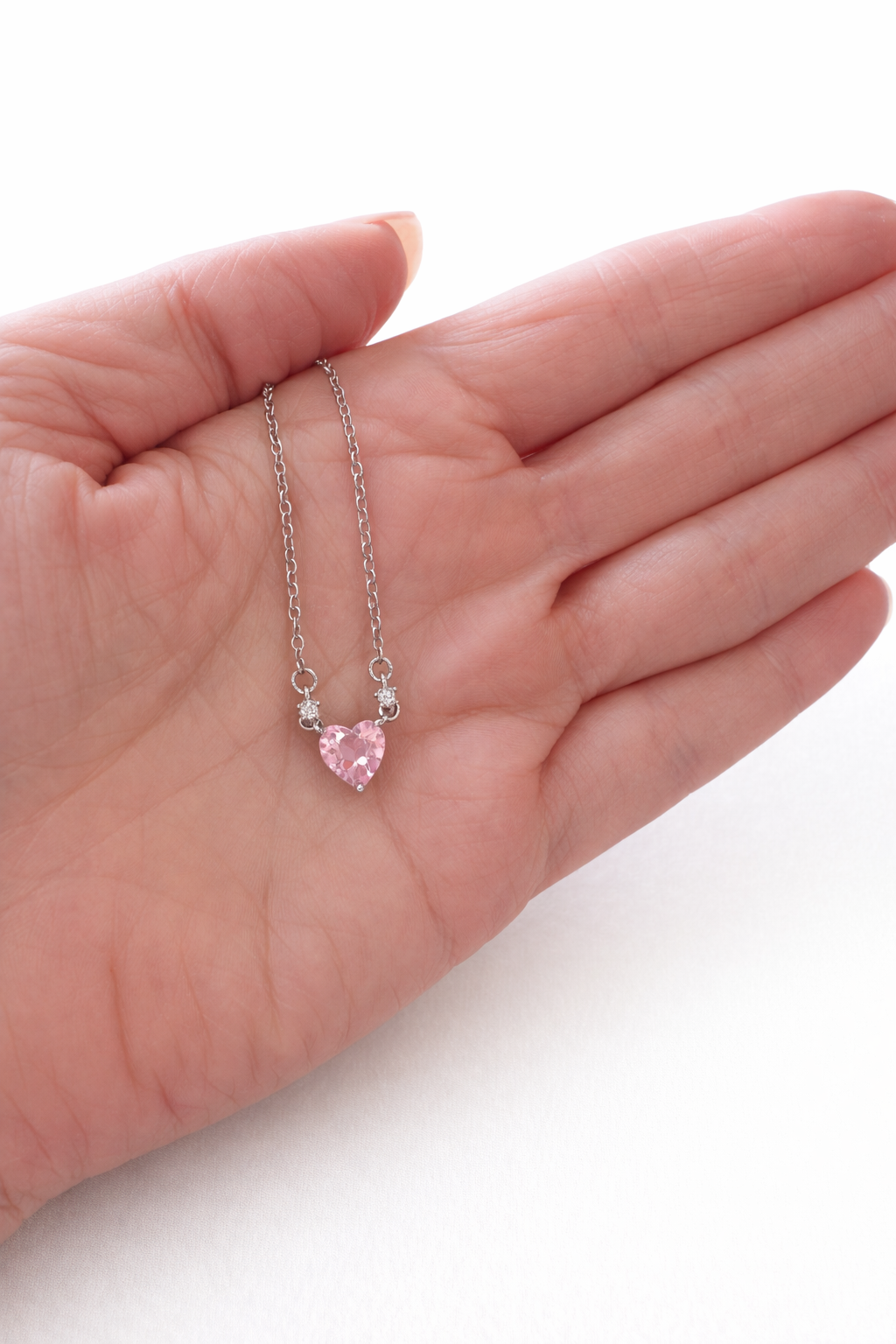 The Charlotte Pink Crystal Heart Necklace is a timeless and elegant piece designed to add effortless sparkle to any look. Featuring a brilliant heart-cut pink crystal zircon with delicate zircon accents, this necklace catches the light beautifully while maintaining a refined, classic feel. Finished with a silver-tone setting and an 18-inch chain, it sits perfectly at the collarbone and layers seamlessly with other favorites. Whether styled casually or dressed up, the Charlotte Crystal Heart Necklace is a versatile piece you’ll reach for again and again.