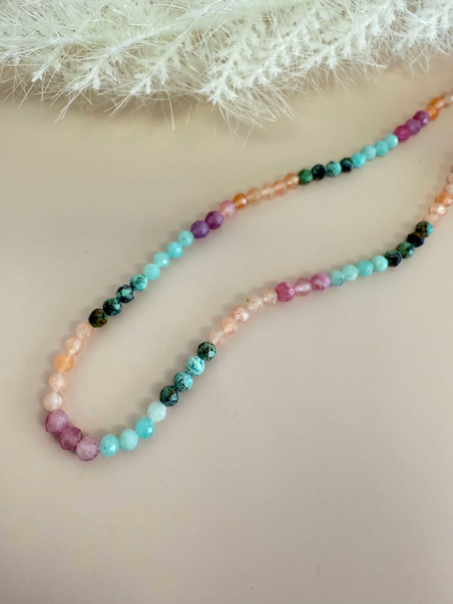 Lightweight beaded necklace with a 2 inch extender