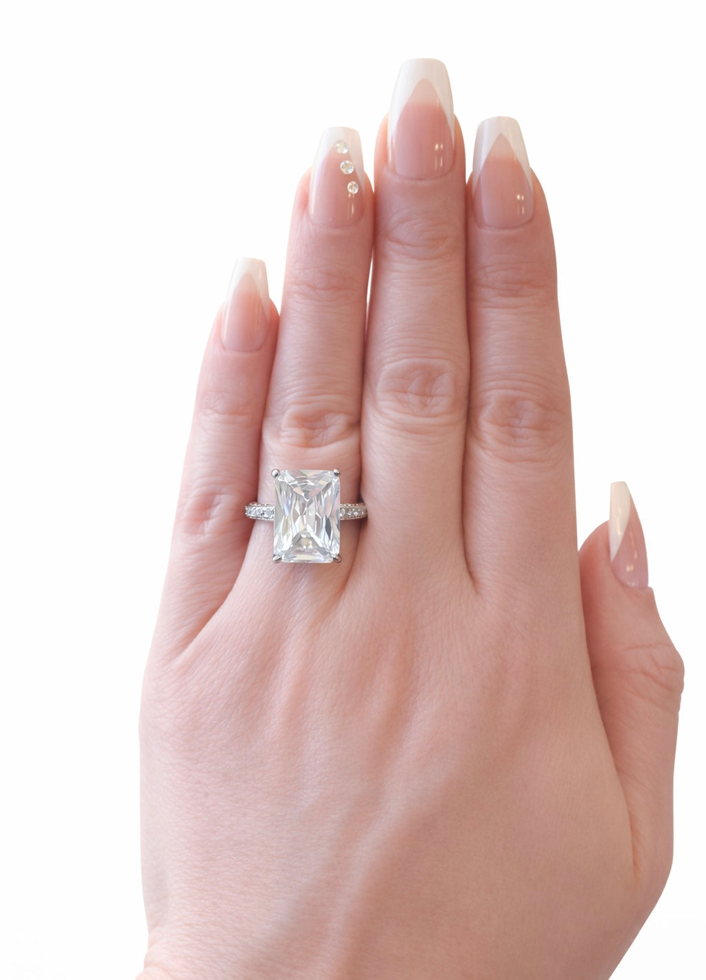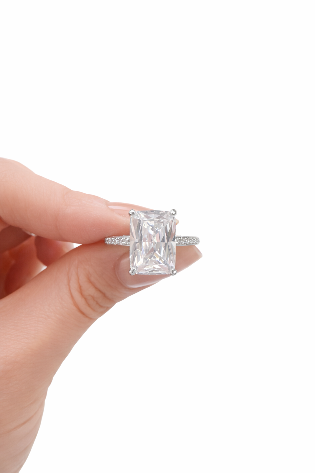 The Valentina Radiant Solitaire Ring delivers sophisticated sparkle with its radiant-cut cubic zirconia center stone, expertly faceted to maximize light reflection and brilliance. Mounted in a silver-plated setting with pavé-detailed band, this ring achieves the refined aesthetic of fine jewelry at an accessible price point. The elevated solitaire design emphasizes stone clarity while the delicate pavé accents add dimensional shimmer. Lightweight and comfortable for daily wear, this piece transitions seamlessly from everyday elegance to special occasions, offering the engagement-inspired look of a luxury statement ring.