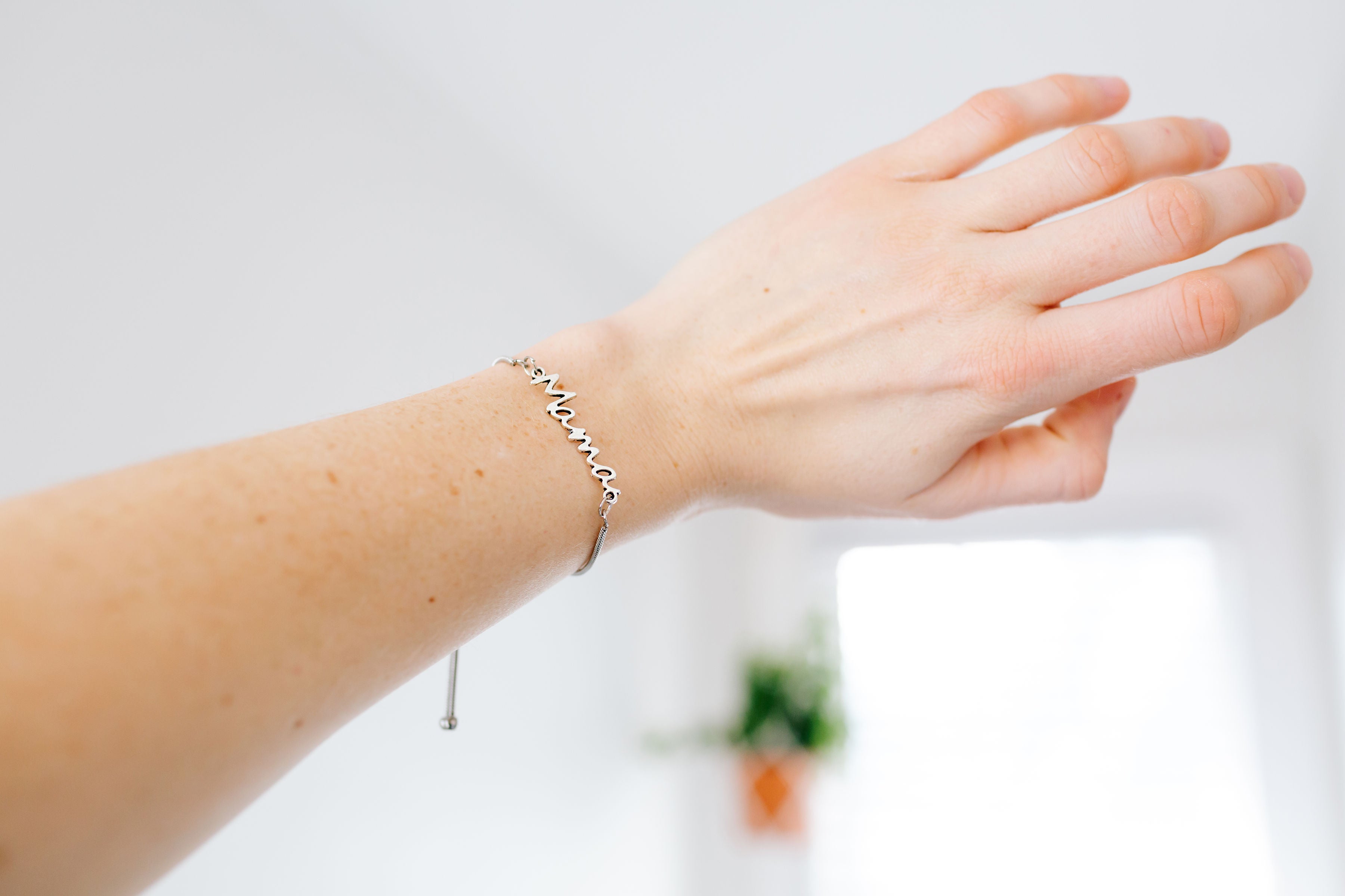 Sterling silver bracelet that read "Mama", with an adjustable strap, perfect for Mother's Day!