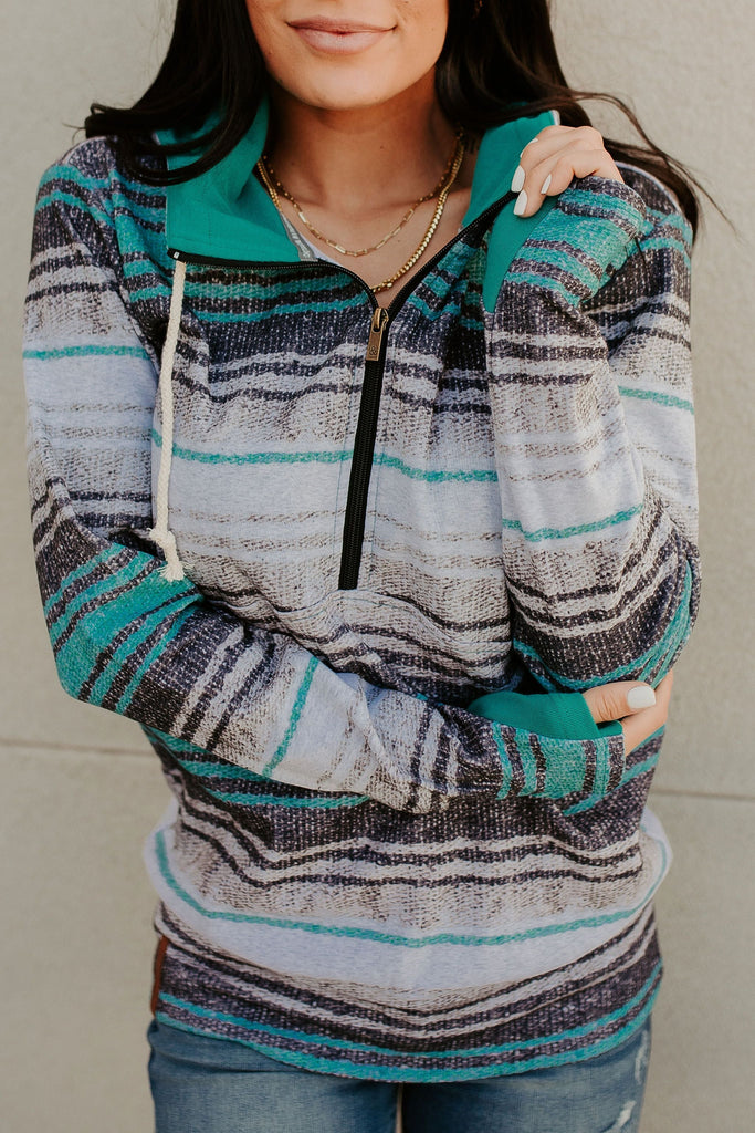 IN STOCK Soft Classic HalfZip Hoodie - Evergreen and Burgundy Stripes