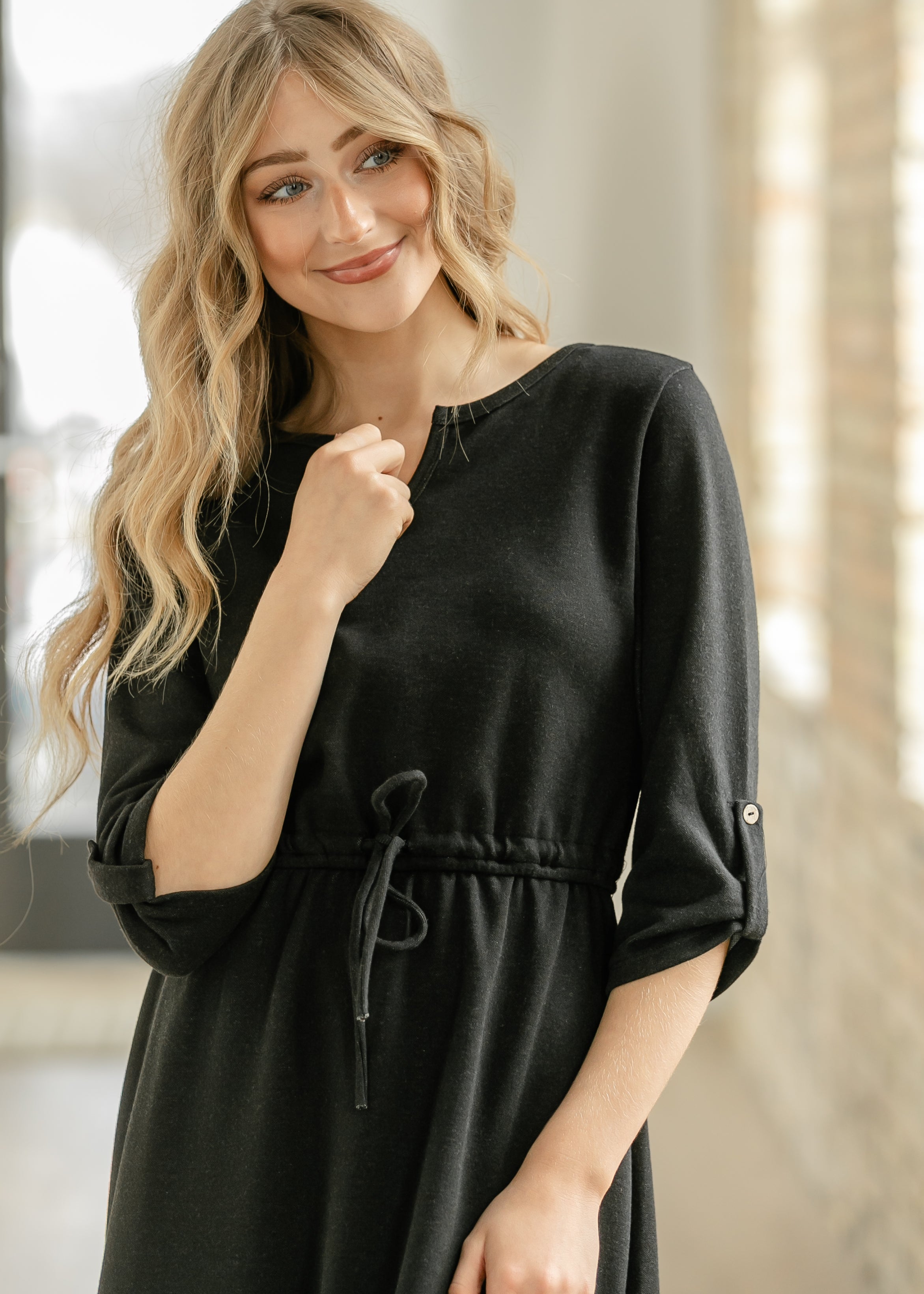 This fan favorite dress is back in a new color! The Monica Cinched Waist Midi Dress is an Inherit Design made in a feminine cut with a flattering neckline. The skirt of the dress flows into a slight a-line and the best part is, there is no need to layer with this dress! There is an adjustable drawstring at the waist to tailor it for your personal style!