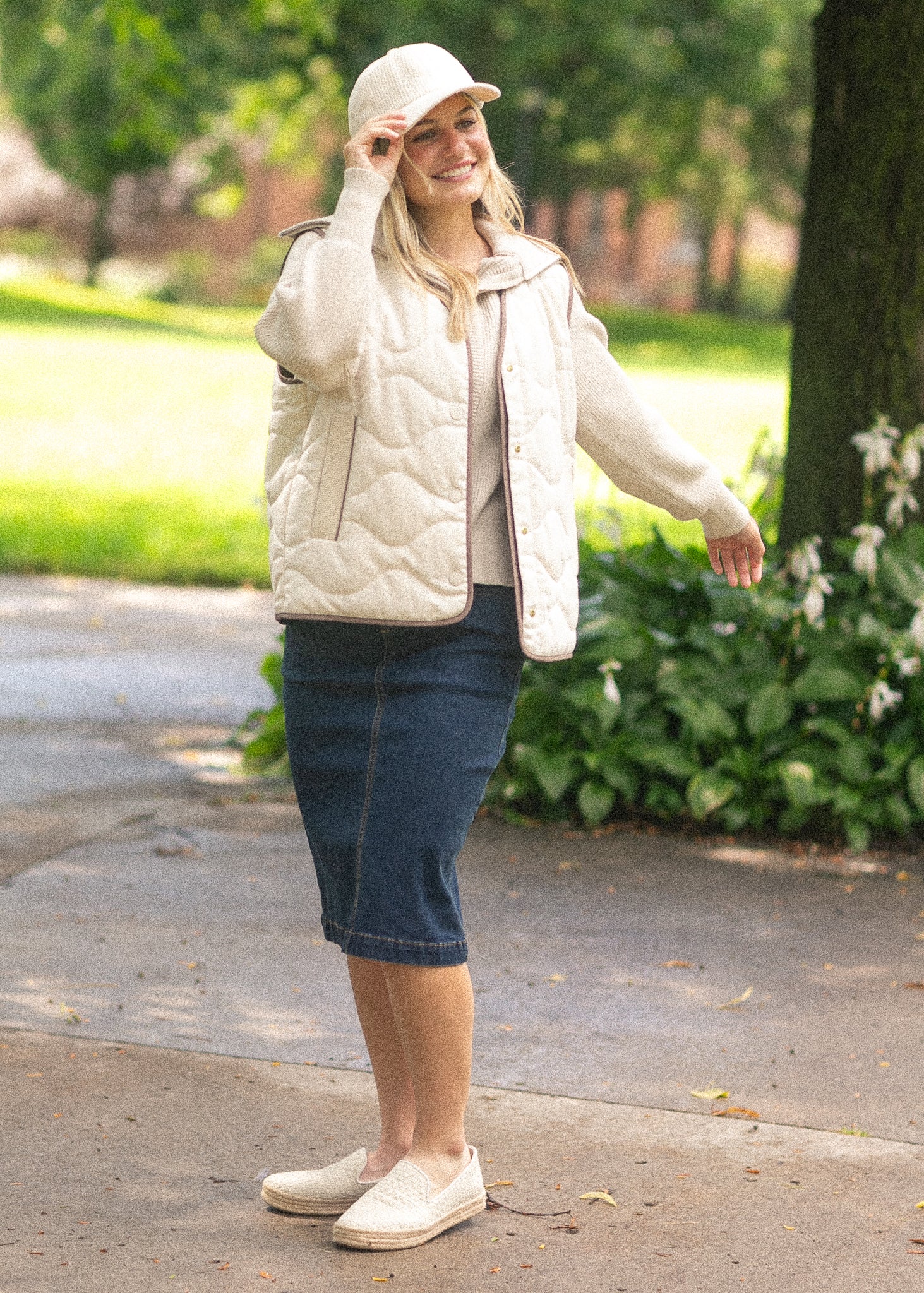 The Sandra Midi Denim Skirt is an Inherit exclusive and a fresh take on our beloved Donna skirt! Made from dark wash stretch denim with a pull-on waistband, it offers a flattering, bulk-free fit. A subtle back slit adds ease of movement, while functional pockets and modest length make this the everyday go-to your wardrobe needs!